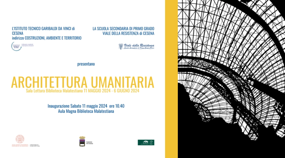 Sabato 11 maggio si terrà, presso la Biblioteca Malatestiana, l’inaugurazione della mostra “Architettura Umanitaria”, a conclusione del medesimo progetto, curato dall’Istituto Tecnico “Garibaldi Da Vinci” di Cesena indirizzo Costruzioni, Ambiente e Territorio (C.A.T.) nell’ambito dei Percorsi per le Competenze Trasversali e l’Orientamento (P.C.T.O) e coordinato dalla prof.ssa Martina Casadei con la collaborazione della prof.ssa Monica Cannizzo, del prof. Alex Lucchi e del prof. Nunzio Mollo e dalla Scuola secondaria di primo grado “Viale della Resistenza” di Cesena e coordinato dal prof. Francesco Fabbretti e dalla prof.ssa Sarah Cuccia.